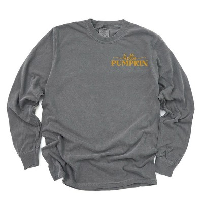 Simply Sage Market Women's Embroidered Hello Pumpkin Long Sleeve Garment Dyed Tee