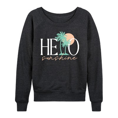 Women's - Instant Message - Hello Sunshine Palms Lightweight French Terry Wide Neck Long Sleeve Graphic Shirt