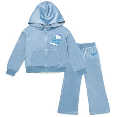 Hello Kitty Girls Fleece Boxy Sweatshirt Crop Top and Jogger Pants Outfit Set Toddler