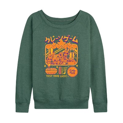 Women's - Instant Message - Arcade Claw Machine Lightweight French Terry Wide Neck Long Sleeve Graphic Shirt