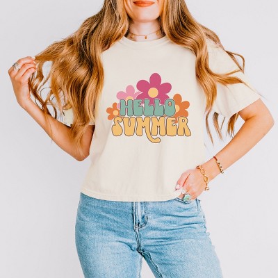 Women's - Instant Message - Hello Summer Script Cropped Graphic T-Shirt