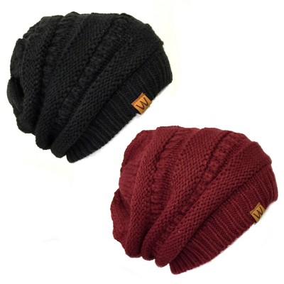 Wrapables Slouchy Winter Beanie Cap Hat Set of 2, Black and Burgundy