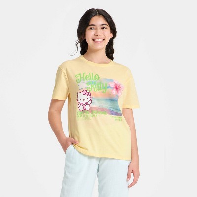 Girls' Hello Kitty Coastal Dreaming Short Sleeve Oversized Graphic T-Shirt - Yellow