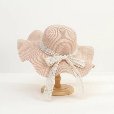 Women's Wide Brim Straw Sun Hat Lace Ribbon Tie Lightweight Summer Beach Hat