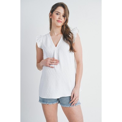 Hello Miz Women's Smocked Square Neck Flutter Sleeve Maternity Top