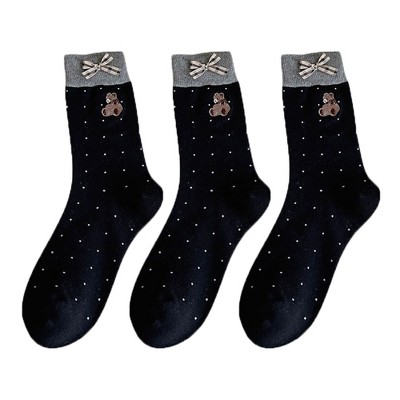 Anna-Kaci 3-Pair Soft Knit Crew Socks with Tiny Dot Pattern, Decorative Ribbon Bow Trim and Smooth Comfortable Stretch Fit