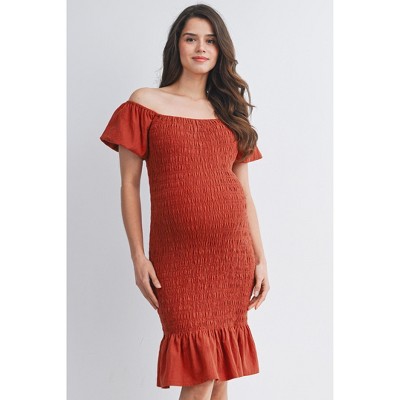 Hello Miz Women's Bodycon Off The Shoulder Smocked Maternity Dress with Ruffle Hem