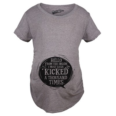 Maternity Hello From The Inside Cute Pregnancy Announcement Parody T Shirt - Crazy Dog Maternity T Shirt With Sarcastic Sayings