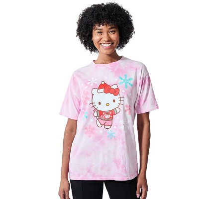 Hello Kitty Christmas Snowflakes Women's Pink Cloud Wash Crew Neck Short Sleeve T-shirt