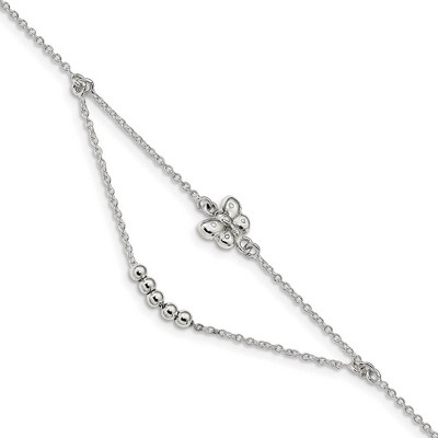 Bella Silver Sterling Silver Double Strand with Leaves Anklet - Silver - 9+1 Inch