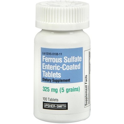 Ferrous Sulfate 325 mg Enteric-Coated Tablets Iron Supplement for Energy, Red Blood Cell & Anemia Support 100 Count
