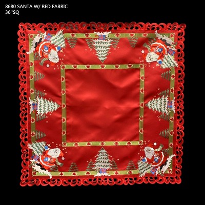 Santa Red Embroidered Cutwork Square Tablecloth, 44 inch square