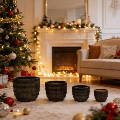 Sapphtopaz 4PCS 7/9/12/14 Inch Ceramic Planter with Horizontal Grooves Outdoor Plant Pot with Drainage Hole Planter Set for Garden, Windowsill