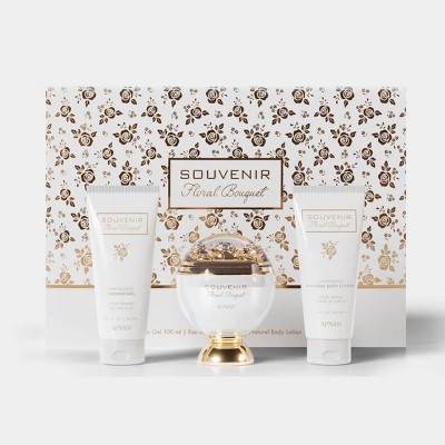 Afnan Souvenir Floral Bouquet 3-Piece Gift Set for Women – Eau de Parfum 3.4 oz, Body Lotion 3.4 oz & Shower Gel 3.4 oz