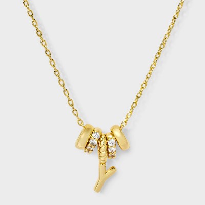 14K Gold Dipped Cubic Zirconia Rondelle Initial Necklace - A New Day™ Gold