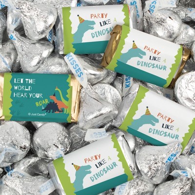 124 Pcs Dinosaur Kid's Birthday Candy Party Favors Wrapped Hershey's Miniatures and Kisses by Just Candy (1.52 lbs)