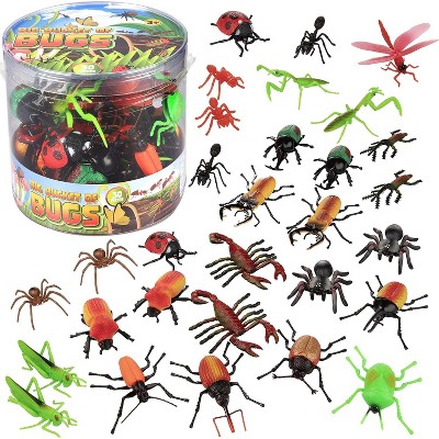 Toy Bug Action Figure Playset - 30pcs w 15 Unique Giant Insects - Grasshoppers, Tarantulas, Spiders & More- 2-4" Realistic Fake Bugs, Great for Pranks