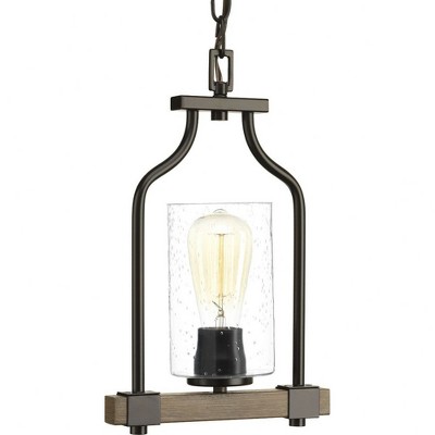 Progress Lighting Barnes Mill 1-Light Mini-Pendant, Antique Bronze, Seeded Glass Shade