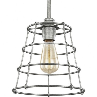 Progress Lighting, Chambers Collection, 1-Light Mini Pendant, Galvanized, Wire-Frame Shade