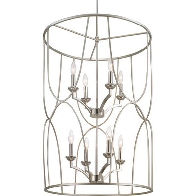 Progress Lighting Gulliver 8-Light Foyer Pendant, Galvanized Finish, Wood Grained Texture Shade