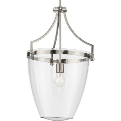 Progress Lighting Clarion 1-Light Pendant, Brushed Nickel, Clear Glass Shade