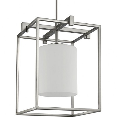 Progress Lighting Mystic 1-Light Pendant, Brushed Nickel, Etched White Glass Shade