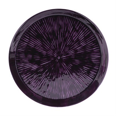 Round Etched Metal Tray 13.5"D – Purple Iron with Starburst Texture, Industrial Decorative Accent by Melrose