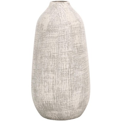 Textured Silhouette Glass Vase for Living Room and Home Decor - Decorative Flower Vase for Mantel, Bedroom or Office Display - 18", White