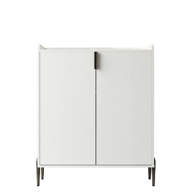 Gulches 2-Door Wine Bar Cabinet with 12-Bottle Rack Adjustable Shelves Soft-Closing Hinges Metal Feet for Dining Room Kitchen Living Room White
