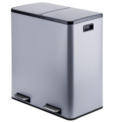 Orieon 10.6 Gallon Dual Compartment Step Stainless Steel Trash Can, Kitchen Garbage & Recycling Bin.
