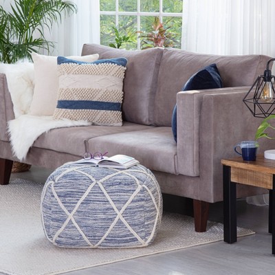 Hanalei Pouf Blue/Ivory - Anji Mountain: Modern Square Medallion Pattern, 21" Padded Seat, Handmade, Polyester