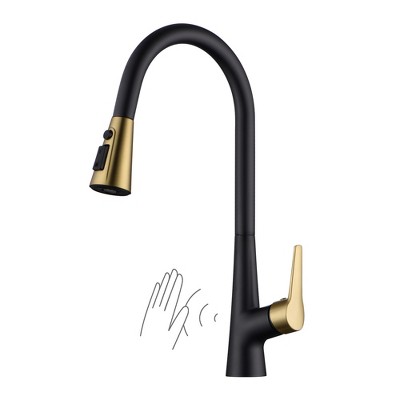 Sumerain Sensor Kitchen Sink Faucet, Pull Down Touchless Hands-Free Kitchen Faucet, Black and Gold