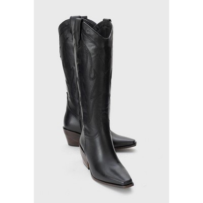 Pietro - Black Leather Western Knee High Boot (Women) | Forever & Always Shoes