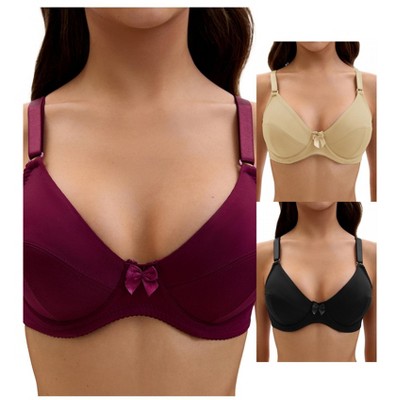 INSPIRE CHIC Women's Adjustable Strap Lace Trim Full Coverage Soft Cup Bras 3 Packs