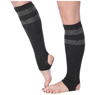 Tipi Toe Womens Stirrup Socks Knee High, Charcoal Color Pattern, Toeless Workout Stockings