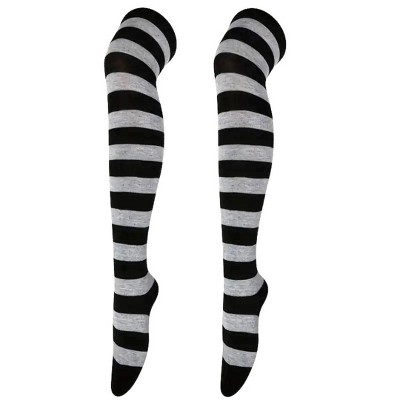 Striped Patterned - Over the Knee - Socks from the Sock Panda (Women's Sizes Adult Medium) - Light Gray and Black