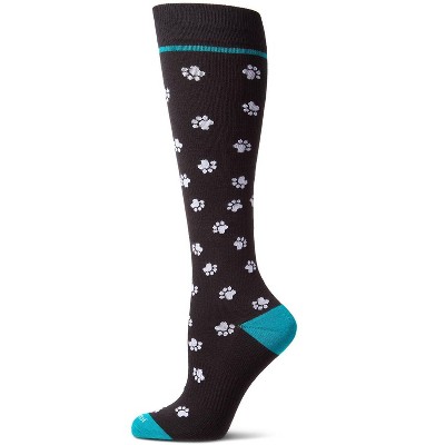 Memoi Unisex "Paw Prints" Cotton Blend Knee High Compression Socks Black 9-11