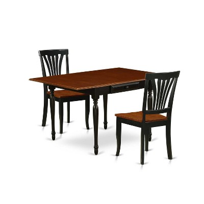 HomeStock 3-Piece Black and Cherry Finish Solid Wood Top With Dropleaf Dining Table Set