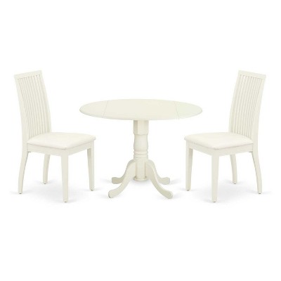 3-Piece Linen White Finish Solid Wood Top - Round Dining Room Set - Seats 4