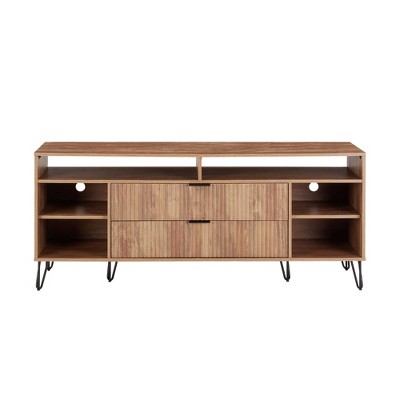 Boho TV Stand for TVs up to 80'', Modern Farmhouse Media Console, Entertainment Center with Solid Wood Legs, Natural - ModernLuxe