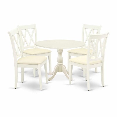 HomeStock 5-Piece Linen White Finish Solid Wood Top Dining table with 4 Chairs with Drop Leaf Slat Back
