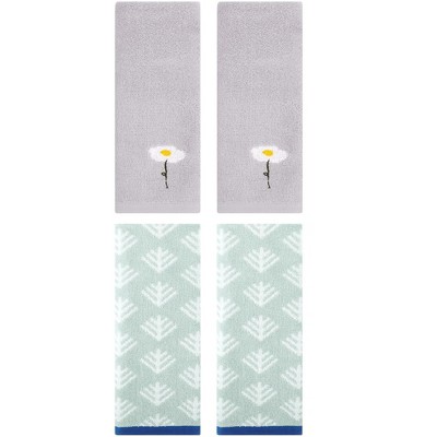 REGALWOVEN 4 Pcs Cotton Soft Absorbent Floral Pattern Hand Towel
