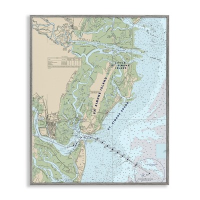 Stupell Industries Traditional St. Simons Island Nautical Map Blue Green, 20" x 16"