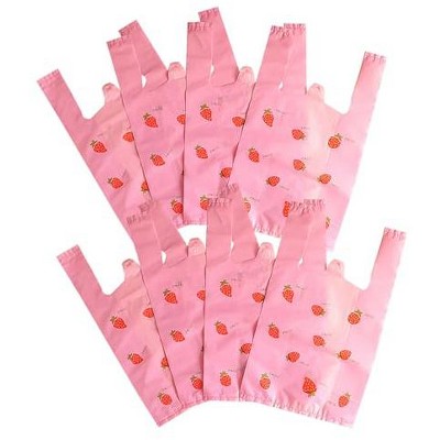 100pcs Pink Strawberry Plastic Bags Shopping Bags 12.6 * 20.5inch for