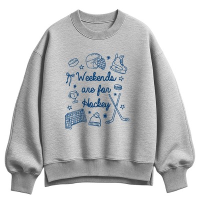 Boys' - Instant Message - Weekends Are for Hockey Graphic Long Sleeve Fleece Sweatshirt