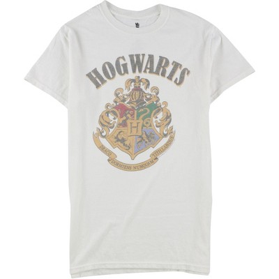 Harry Potter Men's White Hogwarts Emblem Short Sleeve Graphic Cotton T-Shirt