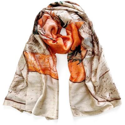Wrapables Silk Like Satin Polyester Large Scarf Wrap, Golden Leaf Tree