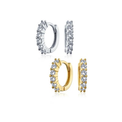 Bling Jewelry Classic Set of 2 Solitaire CZ Cubic Zirconia Round Hoop Earrings Silver Gold Plated Sterling Silver