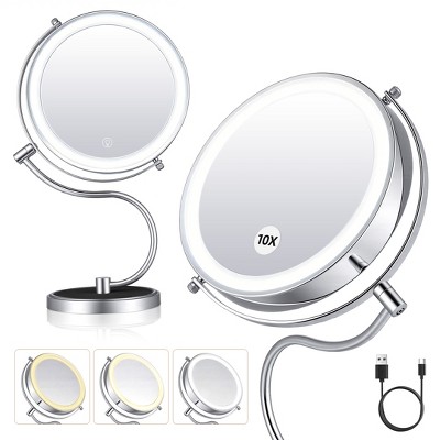 SUGIFT Lighted Makeup Mirror 10X Magnification Rechargeable LED Vanity Mirror 9" Double-Sided 3 Lights