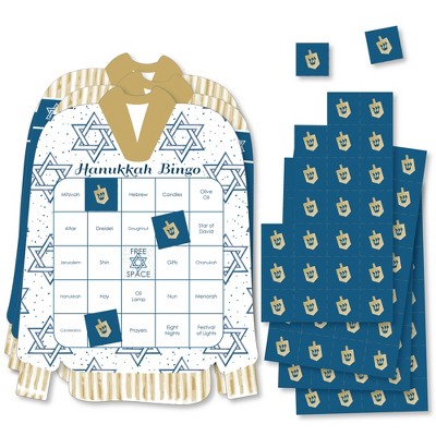 Big Dot of Happiness Happy Hanukkah - Bingo Cards and Markers - Chanukah Shaped Bingo Game - Set of 18